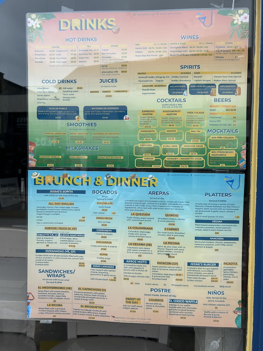 For those in the mood to celebrate, the “Other” drinks selection brings a festive Latin flair with Prosecco, Jug Of Sangria, and Mimosa, ideal for sharing or weekend indulgence. Desserts, listed under Postre, provide a sweet and satisfying finale, ranging from the rotating Sweet Of The Day to classic treats like Churros and the indulgent El Choco Waffle. Families are not overlooked either, with the Niños menu featuring crowd-pleasers such as Mini Chicken Arepitas and Waffle With A Choice Of: Berries & Syrup or Nutella & Banana, ensuring younger diners feel just as welcome.